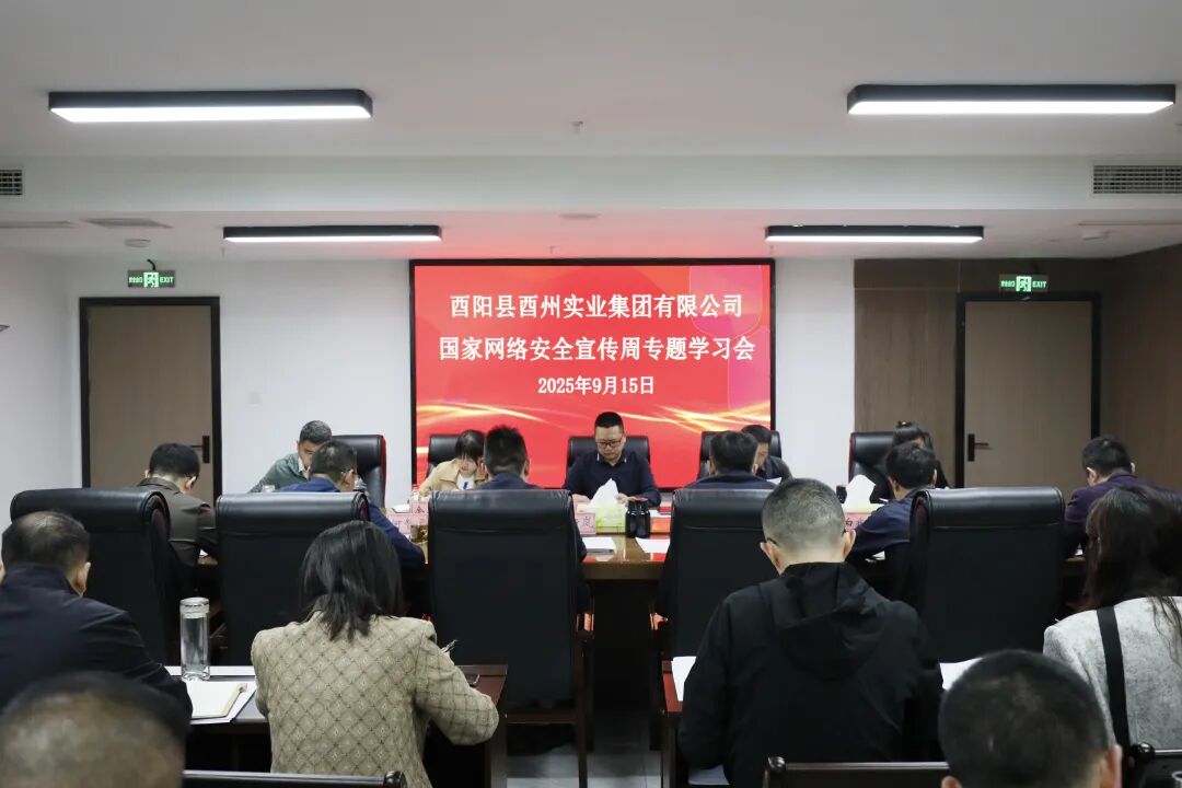 為深入貫徹習近平總書記關于網絡強國的重要思想,積極響應國家網絡安全宣傳周活動。9月15日至21日,酉州實業集團組織開展2025年網絡安全宣傳周系列活動。此次網絡安全工作和網絡安全宣傳周活動受到集團領導高度重視,在活動開展前,召開網絡安全宣傳專題會議,對活動進行提前布局和周密部署,會上組織全員學習習近平總書記對網絡安全工作“四個堅持”的重要指示精神,集中觀看網絡安全教育宣傳片,同時要求集團各部門、各子公司要以本次網絡安全宣傳周活動為契機,扎實開展各自領域網絡安全教育培訓、網絡安全隱患專項排查等工作,全面提升網絡安全整體防控能力,為企業數字化轉型和高質量發展提供可靠安全保障。